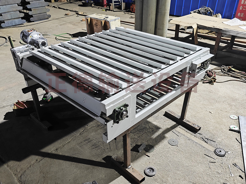 鏈板輸送機(jī)是一種以標(biāo)準(zhǔn)鏈板為承載面,由馬達(dá)減速機(jī)為動力傳動的傳送裝置。鏈板式輸送機(jī),由動力裝置(電機(jī))、傳動軸、滾筒、張緊裝置、鏈輪、鏈條、軸承、潤滑劑、鏈板等等構(gòu)成。其中帶動物料的輸送的主要的兩個部分為:鏈條,利用它的循環(huán)往復(fù)運(yùn)動提供牽引動力;金屬板,作為輸送過程中的承載體?梢酝ㄟ^多列鏈板并行,使鏈板輸送機(jī)做的很寬并形成差速,利用多列鏈板的速度差使多列輸送在無擠壓的情況下變?yōu)閱瘟休斔,從而滿足飲料貼標(biāo)、灌裝、清洗等設(shè)備的單列輸送的要求,我們可以將兩條鏈板輸送機(jī)的頭尾部做成重疊式的混合鏈?zhǔn)沟闷浚ü蓿w處于動態(tài)過度狀態(tài),使輸送線上不滯留物料,可以滿足空瓶以及實(shí)瓶壓力和無壓力輸送。