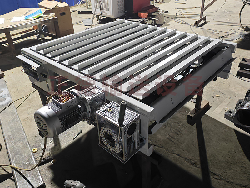 鏈板輸送機(jī)是一種以標(biāo)準(zhǔn)鏈板為承載面,由馬達(dá)減速機(jī)為動力傳動的傳送裝置。鏈板式輸送機(jī),由動力裝置(電機(jī))、傳動軸、滾筒、張緊裝置、鏈輪、鏈條、軸承、潤滑劑、鏈板等等構(gòu)成。其中帶動物料的輸送的主要的兩個部分為:鏈條,利用它的循環(huán)往復(fù)運(yùn)動提供牽引動力;金屬板,作為輸送過程中的承載體?梢酝ㄟ^多列鏈板并行,使鏈板輸送機(jī)做的很寬并形成差速,利用多列鏈板的速度差使多列輸送在無擠壓的情況下變?yōu)閱瘟休斔,從而滿足飲料貼標(biāo)、灌裝、清洗等設(shè)備的單列輸送的要求,我們可以將兩條鏈板輸送機(jī)的頭尾部做成重疊式的混合鏈?zhǔn)沟闷浚ü蓿w處于動態(tài)過度狀態(tài),使輸送線上不滯留物料,可以滿足空瓶以及實(shí)瓶壓力和無壓力輸送。